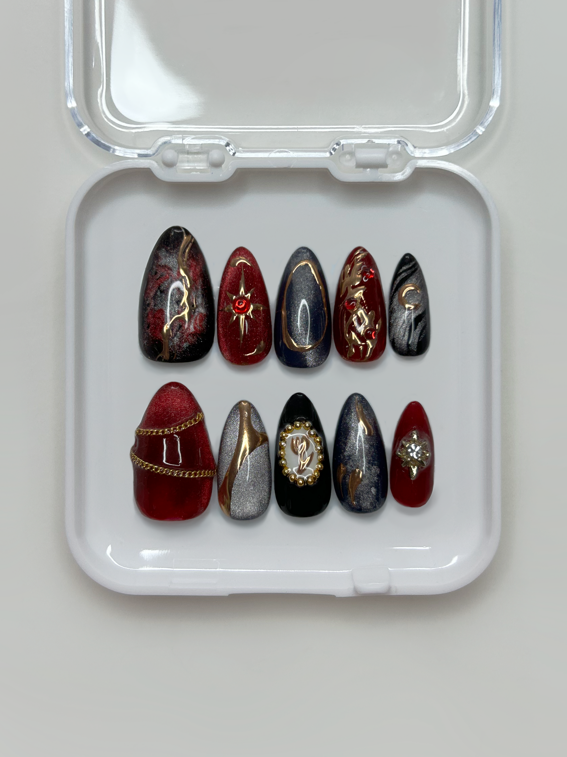 Perfect for those who crave drama, sophistication, and a touch of the arcane, Velvet Arcana makes a bold statement—whether you're channeling dark goddess vibes or adding a luxurious twist to your evening look.